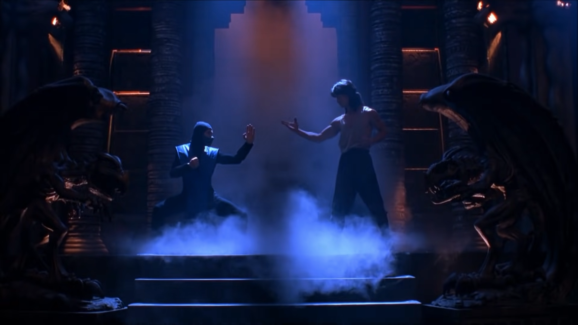 All three eventually meet up on a boat bound for Shang Tsung’s island, where they will partake in the mystical tournament of Mortal Kombat. They get a taste of the kind of opposition they can expect when they come face-to-face with two of Shang’s enslaved champions: Scorpion and Sub-Zero, both of whom wield supernatural powers (Sub-Zero demonstrates his cryomancy by destroying Sonya’s pistol, swiftly removing any firearms from the film).