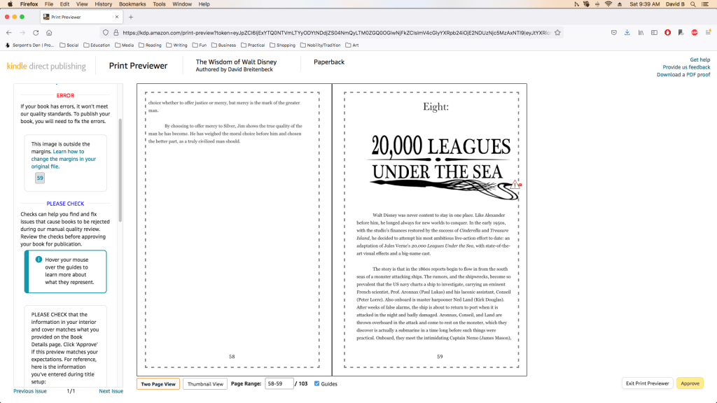 I haven’t self-published anything in a long time, and prepping Wisdom of Walt Disney for paperback and re-publication has required me to learn or relearn a lot of things. Though the experience still hasn’t been nearly the nightmare it was the first time I tried it.