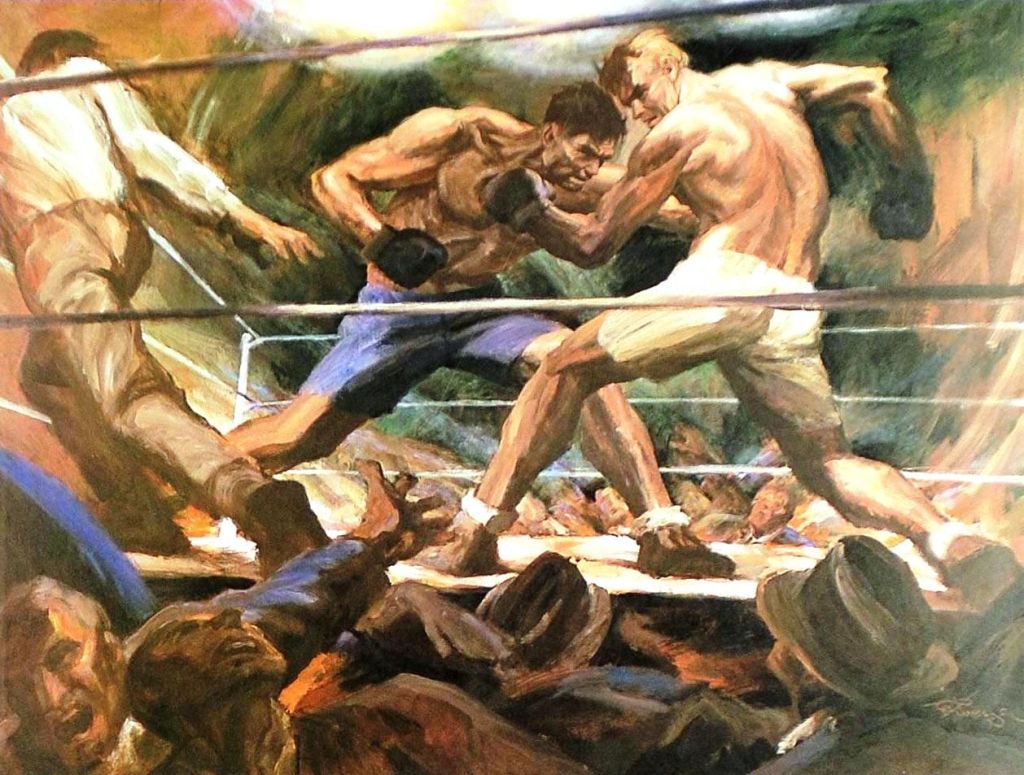 The moment the ref stepped away, Mad Dog was on him again. This time Arthur put up a better fight; he parried and ducked the first combo and landed a hard, but sloppy cross to the body, but it cost him another hard hook to the face. He didn’t let up, but kept pressing in on Arthur, pounding at every opening. Arthur was throwing more defensive blows now, half-blind, and at last one sharp cross landed clean enough that Mad Dog felt it. He retaliated at once with a jab-hook combo, and Arthur spun and hit the mat.